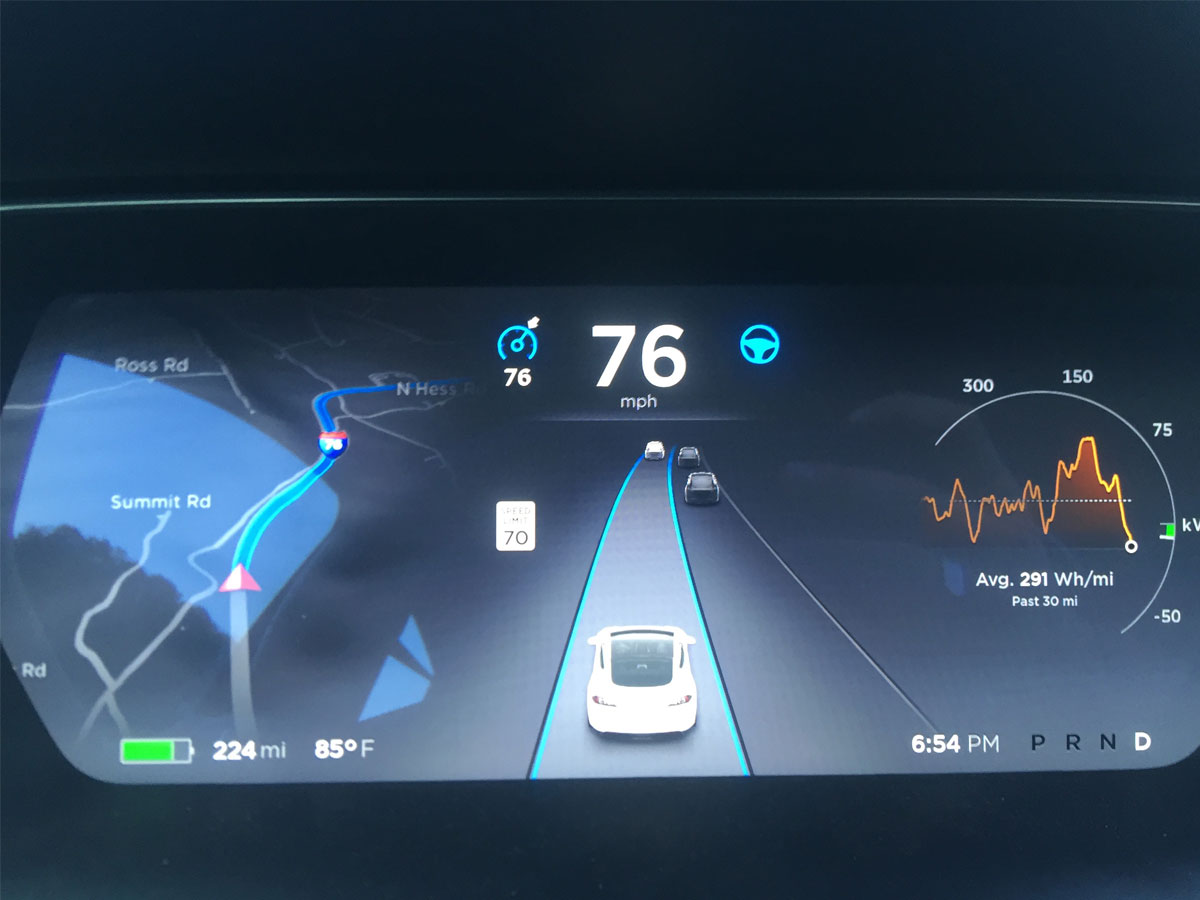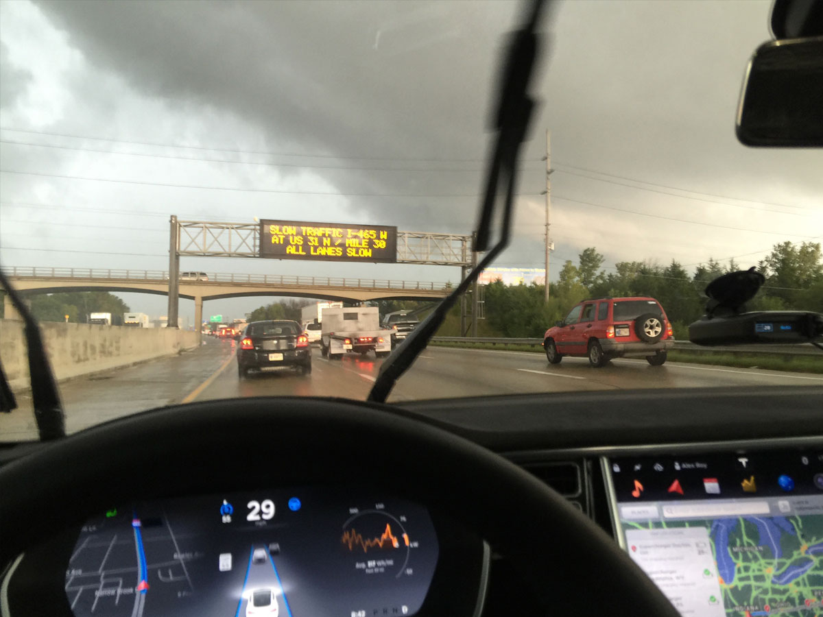 97.7% of the drive was on Autopilot. We kept at least one hand on the wheel at all times — involuntary disengagements are for amateurs. Autopilot isn’t a self-driving car, even though it often feels like one.